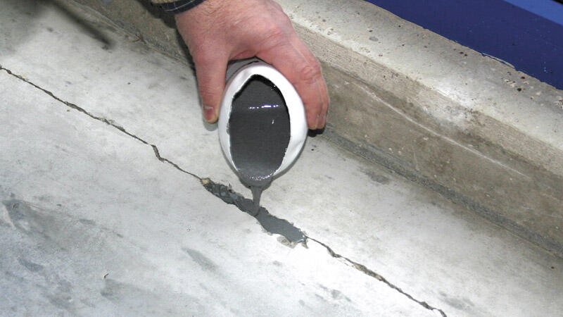 Widerstandsfähiges und selbstnivellierendes Epoxydharz inkl. Estrichklammern zur Armierung der gerissenen Fläche, schlagfest, selbstentlüftend, chemikalienbeständig, lösemittelfrei, mechanisch hoch belastbar, frost- und witterungsbeständig, geruchsarm, wasserfest, für innen und außen.