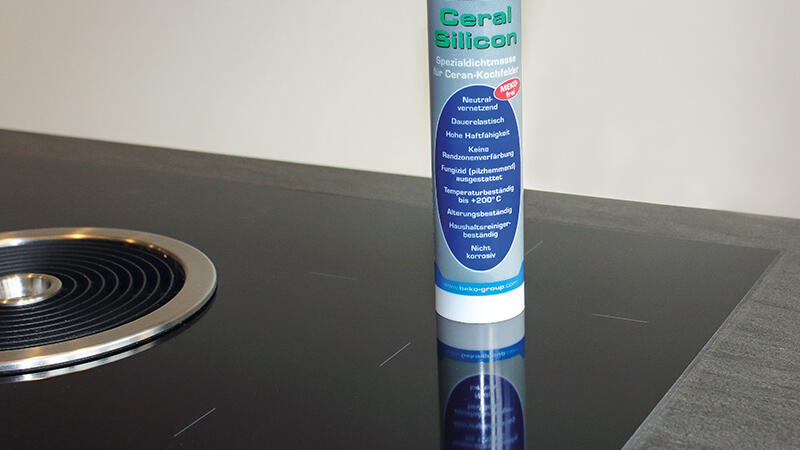 Speziell für den Einbau von Ceran-Kochfeldern, MEKO-frei, fungizid (pilzhemmend) ausgestattet, keine Randzonenverfärbung (bei Naturstein), beständig gegen verdünnte Säuren und Laugen, temperaturbeständig bis +200° C, beständig gegen haushaltsübliche Reinigungsmittel, nicht korrosiv.
