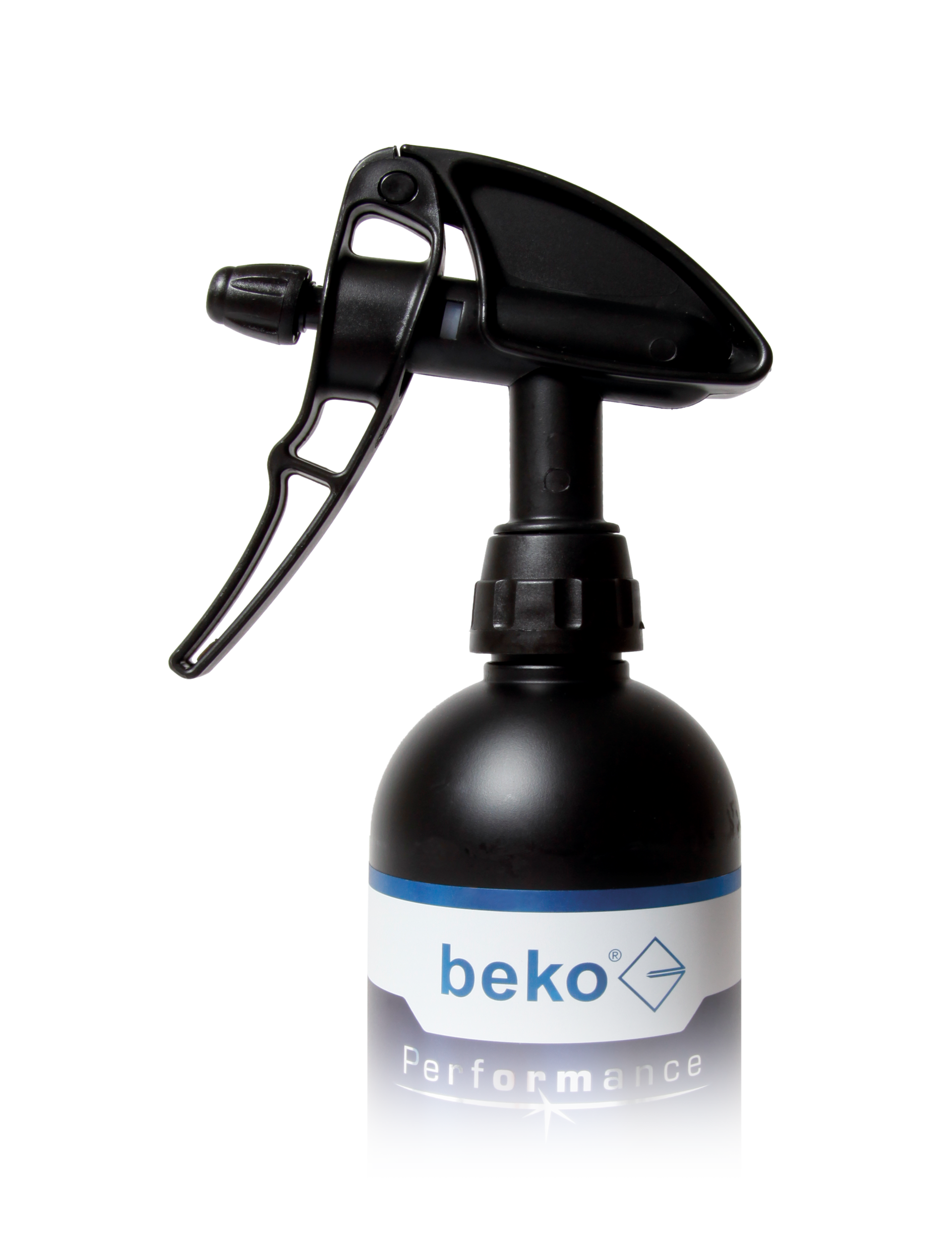 Performance No. 9 auf die mit Performance No. 2 vorgereinigten Oberflächen (nass oder trocken) dünn und gleichmäßig mittels Sprühflasche auftragen und anschließend trocknen lassen.