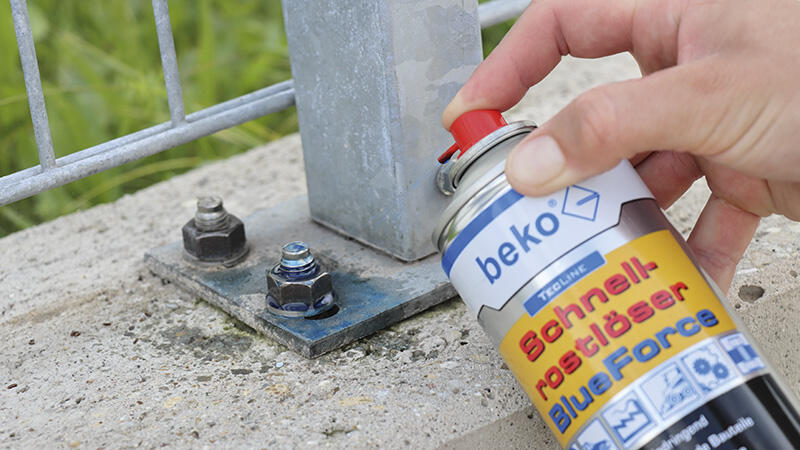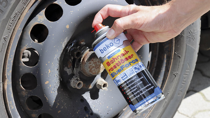 Zum Lösen von Schmutz und festsitzenden Bauteilen bzw. festgerosteten Verbindungen wie Muttern, Schrauben, Gelenken, Muffen, Scharnieren, Maschinenteilen, Bolzen etc.